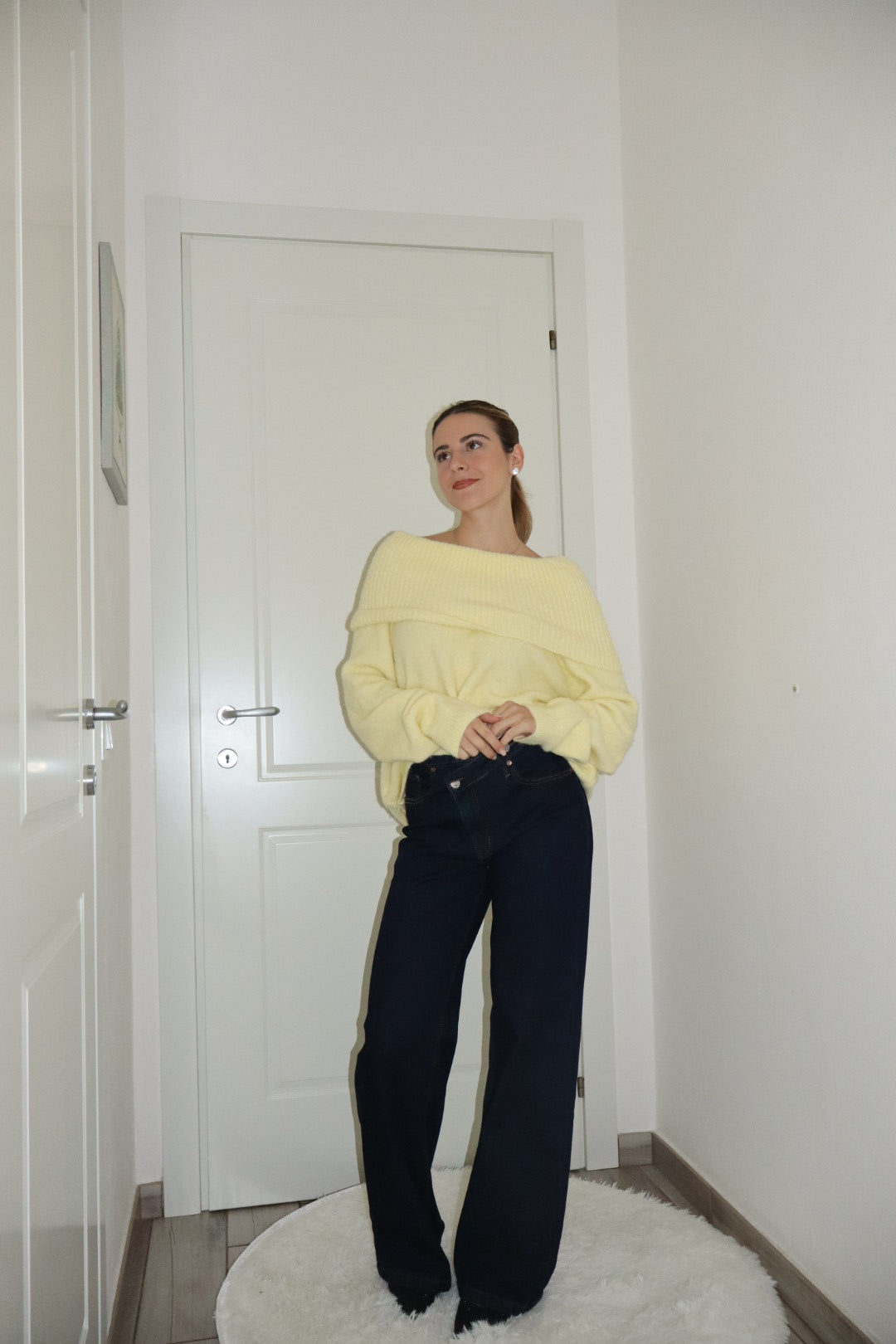 Maglioncino super morbido, caldo ed elastico con piega per spalle scoperte.